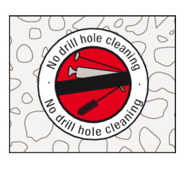 - Při použití kartuše injektážní malty není nutné před aplikací čistit otvor. Tím se šetří čas.
