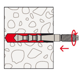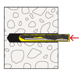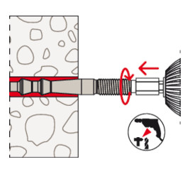 - Při utahování šestihranné matice se kužely kotevního svorníku vtáhnou do maltového lože, které se rozepne proti stěně vrtaného otvoru.